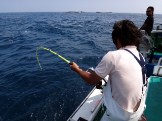 7/07 銭洲 23.3℃澄み ムロアジ作戦 飯田助手。 難しいロッドを託され、奮闘中。 1バラシ。1GETのイーブン。 送り込みのタイミング。微妙だけど、気を使うところですな。 日々精進。ですな。飯田君。