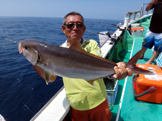 7/22 銭洲 26.5℃薄濁り フィッシング 遊釣行会 静岡市 D様 カンパチ1.55-6.15kg4本 どうだ~!!!と、言わんばかりのナイスポーズ。 D様。 ナイスです。 遠征は、指定席ご予約のスーパーVIPシステム。 自分へのご褒美に贅沢な釣りを。。。 存分に楽しめ、ご満悦でお帰り頂きました。 なお、次回ご予約お問合せ有難う御座います。 更なる大物を目指しましょう!応援しています。 今後とも宜しくお願い致します。