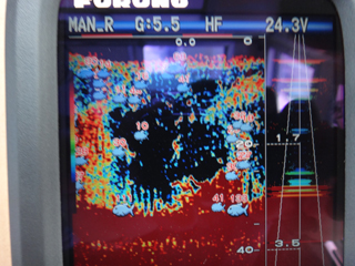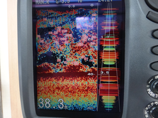 5/08 銭洲 20.5℃ 薄濁り シマノ NEW探見丸 お魚マークです(^。^) |