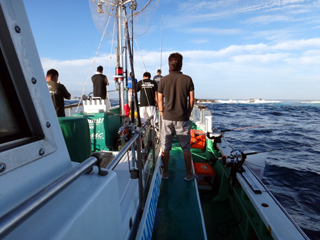 8/02-03 大人の遠足 part 6 銭洲→藺灘波→銭洲 1日目銭洲27.3℃澄み Yさん ヒラマサ15.0kg おめでとう御座います。ナイスファイトでした。