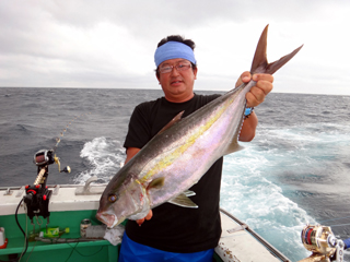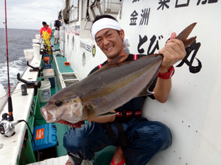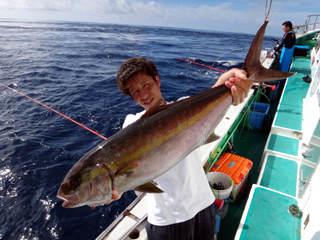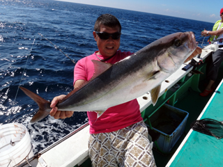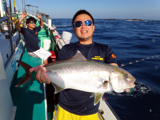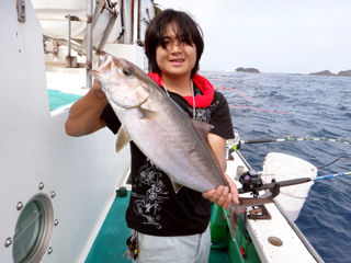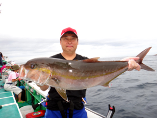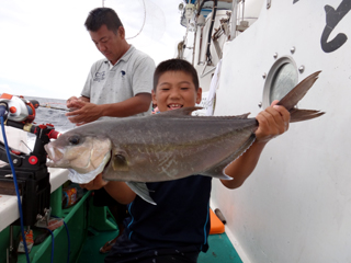 8/13 銭洲 26.4℃濁り K様Jr カンパチ5.3kg おめでとう!