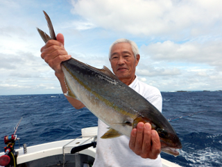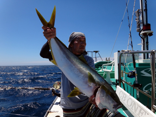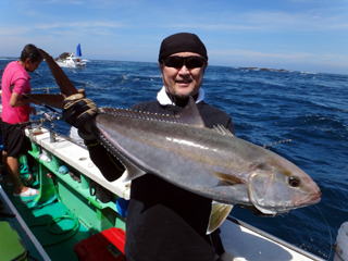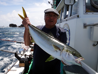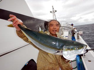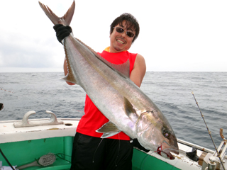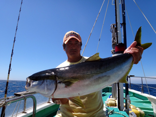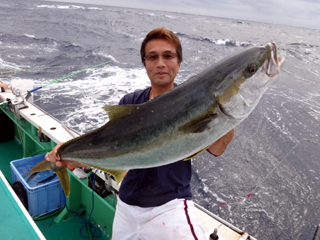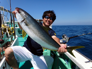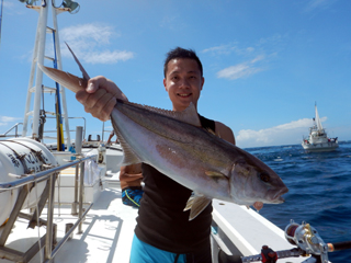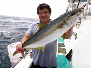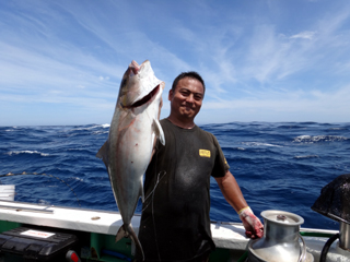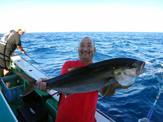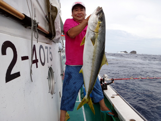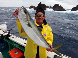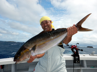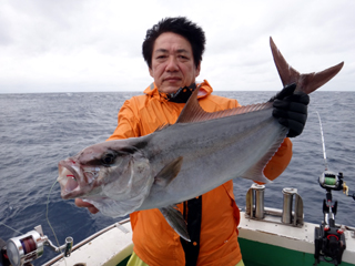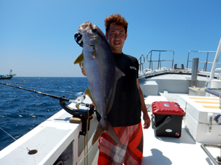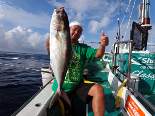 8/01 銭洲 26.6℃薄濁り チビムロ作戦 I さん カンパチ2.0-3.1kg4本、ヒラマサ6.1kg 腕は衰えてませんでした。 流石です。