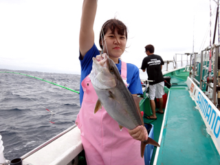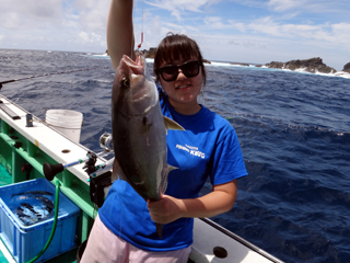 8/28/29 大人の遠足 part 8 銭洲 26.2℃薄濁り K様 カンパチ1.9kg おめでとうございます! レディース!カンパチGETでございます! 素晴らしいですね!