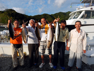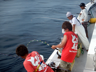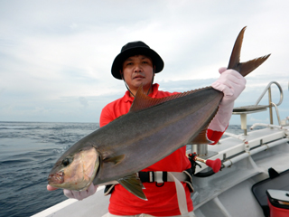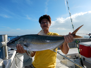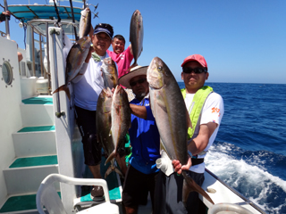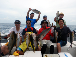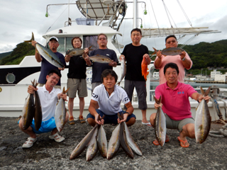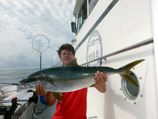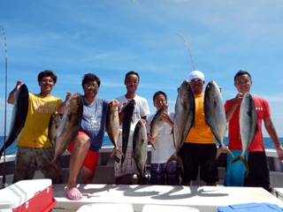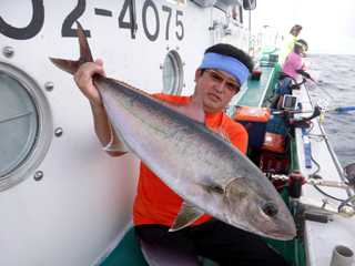 8/09 銭洲 25.9℃薄濁り チビムロ作戦 K様 カンパチ5.0-7.5kg4本