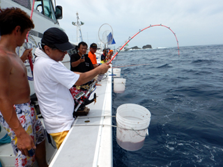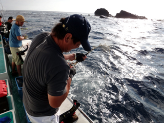 8/28/29 大人の遠足 part 8 銭洲 26.2℃薄濁り K様ファイトシーン きました!きました!きましたー! ファイトー!!一発!!頑張っております!