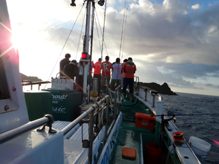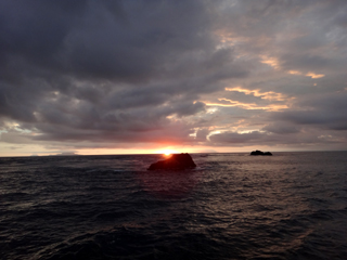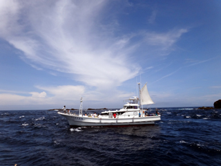 8/16/17 大人の遠足 part 7 銭洲 26.5℃濁り 式根島に入港しました! 束の間の休息ですが、観光と休息を兼ねて入港します。