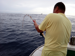 8/16/17 大人の遠足 part 7 銭洲 26.5℃濁り S様ファイトシーン きました!朝一のファーストヒットでした! 気合が入りました!
