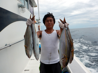 8/13 銭洲 26.4℃濁り S様 カンパチ1.85-6.8kg3本
