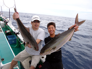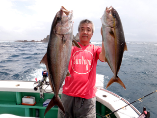 8/05 銭洲 25.8℃澄み チビムロ作戦 K様 カンパチ2.15-5.15kg2本 流石K 親分!