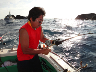 8/02-03 大人の遠足 part 6 銭洲→藺灘波→銭洲 1日目銭洲27.3℃澄み Yさん かなりの大物で…! 頑張ってください!