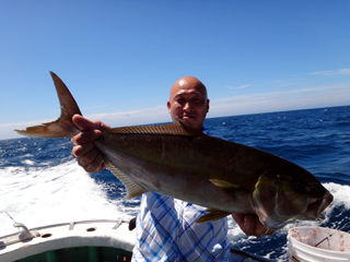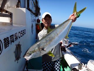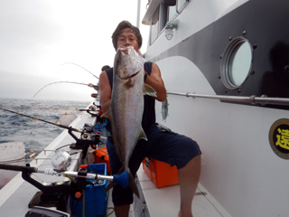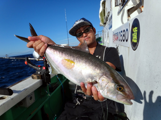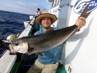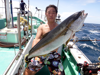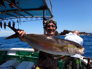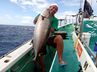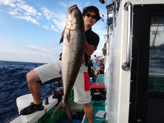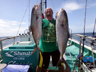 8/27 銭洲 25.7℃濁り Y様 カンパチ6.55kg頭に2本 おめでとうございます! 素晴らしい笑顔です!