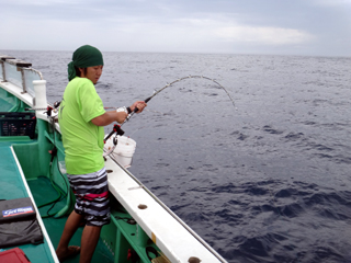 8/14 銭洲 26.6℃薄濁り M様 ヒット~! パープルの剛樹が唸ります!