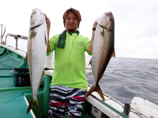 8/21 銭洲 26.4℃薄濁り S様 カンパチ4.6kg頭に2本 おめでとうございます! 無事カンパチキャッチできて良かったです。