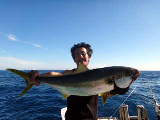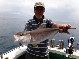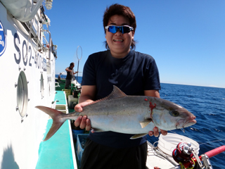8/02 銭洲 27.3℃澄み チビムロ作戦 伊勢原市 O様 カンパチ4.3㎏! 先生に自慢できるようなカンパチを釣りたいですね。