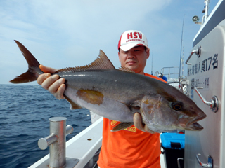 8/14 銭洲 26.6℃薄濁り M様 念願のカンパチGET! おめでとう御座います。