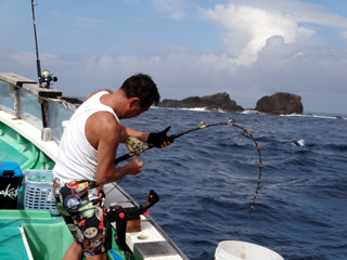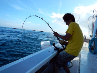 8/21 銭洲 26.4℃薄濁り Y様ファイトシーン 初銭洲!初ヒットでございます。