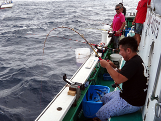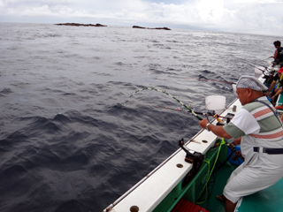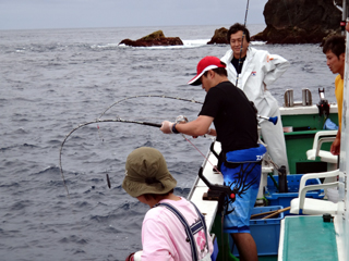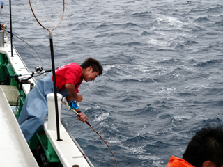 8/01 銭洲 26.6℃薄濁り チビムロ作戦 Sさん、カンパチ2.4-5.65kg2本 粘りと根性でGETですね。おめでとう御座います。