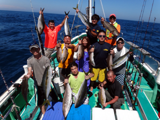 8/19 銭洲 26.5℃薄濁り カンパチ1.85-7.75kg10本、ヒラマサ4.65-5.7kg2本、ハガツオ5.5kg