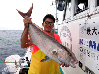 8/15 銭洲 26.3℃濁り Y様 カンパチ12.35kg 本日、竿頭GET! おめでとう御座います。