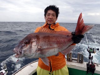 8/28/29 大人の遠足 part 8 銭洲 26.8℃薄濁り Y様 マダイ5.8kg おめで鯛マダイでございます!おめでとうございます コマセではなく泳がせでゲットです!