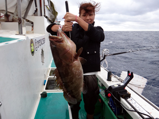 8/30 銭洲 27.4℃薄濁り A様 モロコ8.5kg 初遠征にて幻の高級魚モロコ(クエ)ゲットでございます! おめでとうございます!