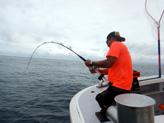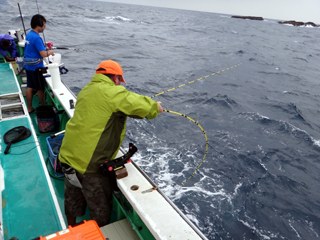 N様ファイトシーン カンパチ5.25kg おめでとうございます! 落ち着いたファイトでしっかりキャッチです。