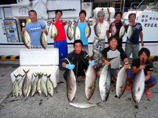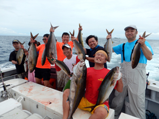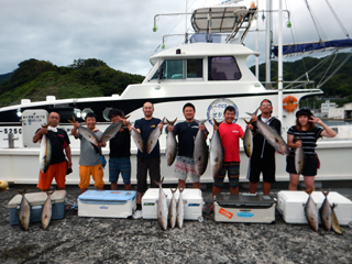 9/07 銭洲 26.2℃薄濁り 名古屋FishingKING釣行会 カンパチ1.25-10.15㎏0-5計18本 ヒラマサ4.7㎏1本