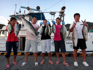 9/07 銭洲 26.2℃薄濁り M様 カンパチ9.4㎏頭で5本!サングラス効果ですね!(^u^)