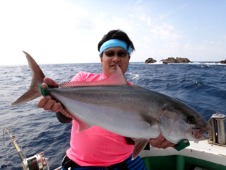 フィッシングギャルAちゃん! やりますね~!カンパチ3.0kg、シマアジ1.3kg 流石すぎます。
