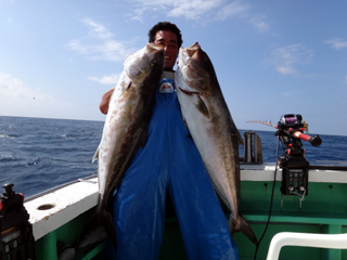 宮内助手ファイトシーン 飯田助手ファイトシーン 飯田助手 カンパチ8.95kg 宮内助手 カンパチ 3.15kg |
