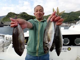 5/11 土肥沖 山口先生!イサキのトリプル掛け! お見事!(^O^)/