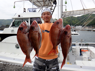 5/06 土肥沖 乗っ込みマダイ 中村氏 0.8‐1.2㎏4枚GET! 一発大きいのほしいですね!