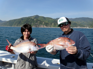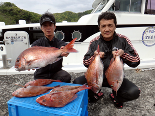 5/08 土肥沖 乗っ込みマダイ 宮下さん!流石です!マダイ1.8㎏頭で4枚 細野さん!マダイ1.35㎏頭で2枚!