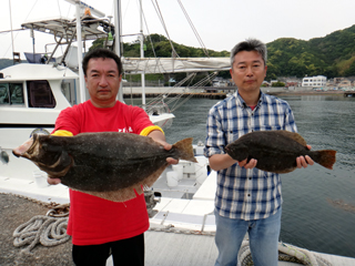 5/19 土肥沖 落とし込みサビキ釣り! 小林氏 ヒラメ1.5㎏ 岩瀬氏 ヒラメ1.1㎏! 小林さん!マダイ釣りのはずが…お疲れ様です。 岩瀬さん!今度はマダイ釣りましょうね!