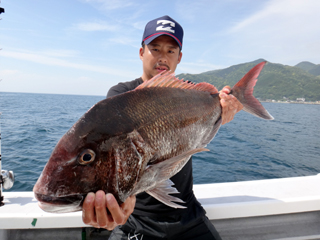 5/23 石花海 宮内助手 マダイ釣りでマダイ初GET!3.3㎏! 初マダイおめでとう!(^O^)/