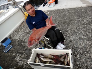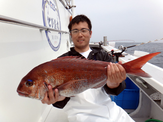 6/01 石花海 宮内助手 マダイ6.4㎏! はやくも6㎏オーバー!やりましたね(^u^) |