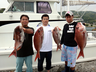 5/25 石花海 富士宮市 中村様 マダイ3.68㎏頭で3枚! お見事!!