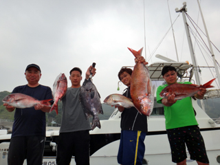 6/28 石花海 米木様 石花海仕立て!皆さん大変お疲れ様でした。 石花海の美味しい激うまイサキ&オオアジを堪能して下さい!
