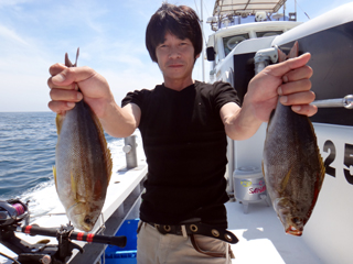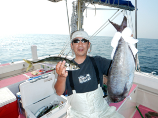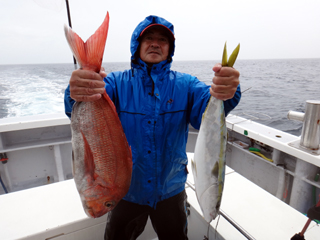 7/05 石花海 沼津市 山田様 マダイ2.63㎏&イナダ1.75㎏! 山田さん!久しぶりの石花海で楽しめましたか? クッション無しでマダイさすがでした。