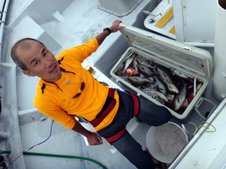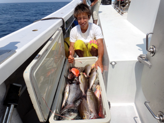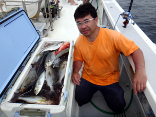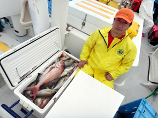 7/02 石花海 宮内助手クーラー満タン! 宮内くん!だんだんコマセ釣りに馴れて来ましたね!