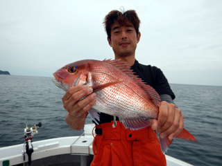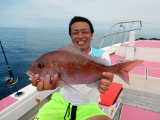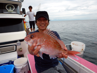 8/29 土肥沖秋マダイ開幕! 17号船マダイ釣り初出船! 横浜市 大竹様 マダイ0.8㎏ |