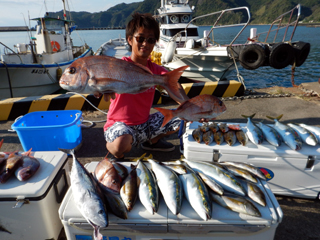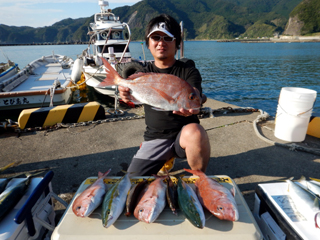 9/16 土肥沖秋マダイ&イナダ! 立川市 直井様 マダイ1.25㎏頭で4枚! イナダ2本&イサキ2枚!