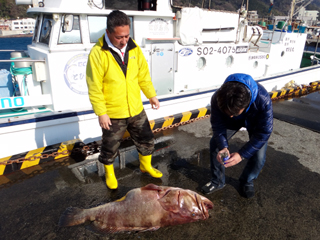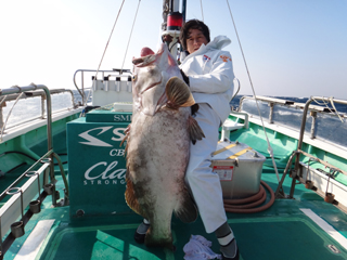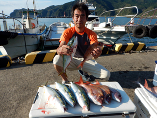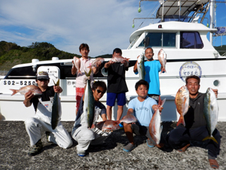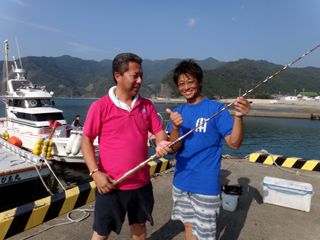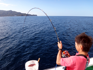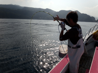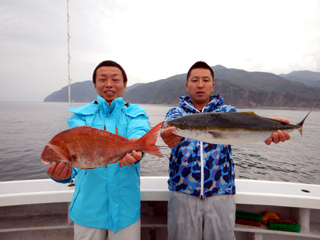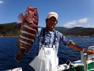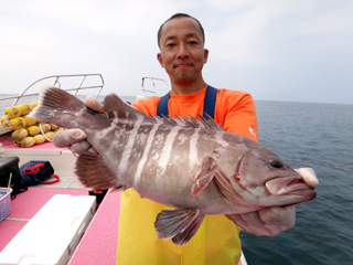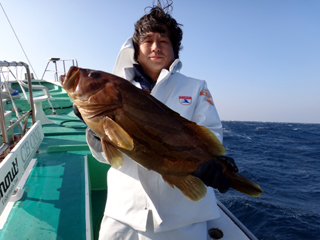 9/27 土肥沖 マダイ狙いでO様マハタGET! 飯田助手ワラサ! |