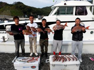 10/12 土肥沖秋鯛開幕! マダイ0.6‐1.9kg0-7計18枚!他イサキ頭10、カンパチ1.4㎏等! K様マダイ&カンパチ!M様兄弟マダイ7枚&3枚!