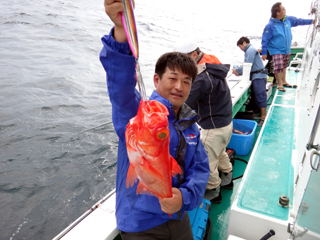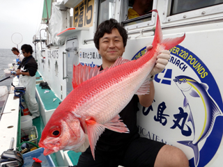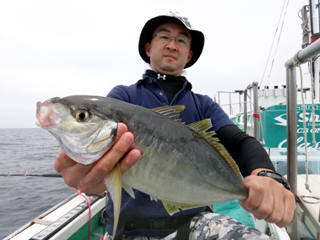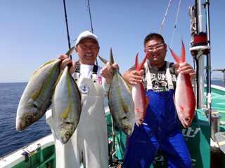 左 栄区 Nさん、今期最大シマアジ6.1kg(自己新記録)おめでとう御座います! 潮の変わり目に、ドン!っと!出ました! 今後も注意続きます! 右 Sさん ルアー極めてます!カンパチ保養中につき、もう少しお待ちください! 5/26 銭洲 20.3℃薄濁り 極の会仕立 シマアジ0.85-6.1kg3枚、ルアカン2.7kg、ブリ10.2kg、メダイ6.4kg、真鯛1.25-4.05kg7枚、メジナ12枚、ウメイロ五目6-18枚