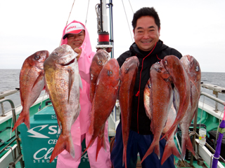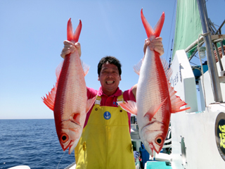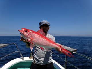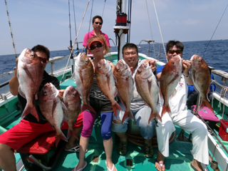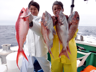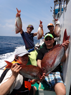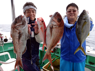 左 S夫妻 シマアジ&真鯛 バリバリ釣ります!凄し! 右 Yさん&Wさん Wさん、30分で真鯛7枚!凄腕です! Yさん!次回、シマアジ頑張りましょう! 5/24 銭洲 19.0℃薄濁り シマアジ0-4計9枚、真鯛3.7kg頭に0-7計18枚、オナガ2.1kg頭に2本、メダイ4.25kg級2本、ウメイロ五目2-28枚、スマ、メジナ