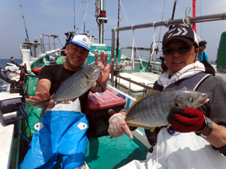 左 Kさん、初のオナガGETおめでとう御座います! 右 Dr,Hさん、ルアーオナガ4.8kgGET! 絶妙なアクションでGETです! 5/17 銭洲 18.9℃濁り オナガ2.0-5.3kg合計7本、(ルアー4.8kg)、カンパチ4.75kg、メジナ26枚、シマアジ1.3kg2枚ウメイロ等