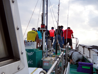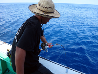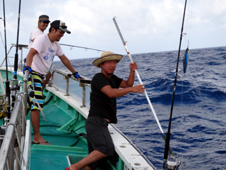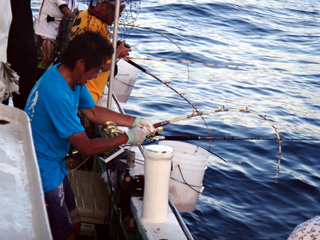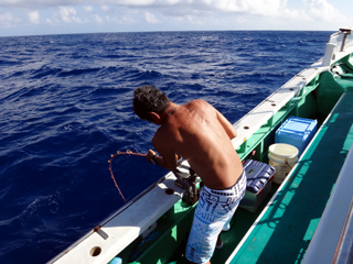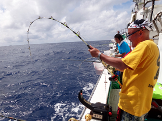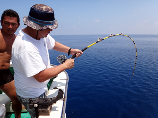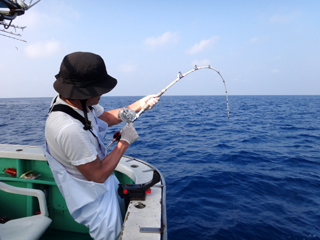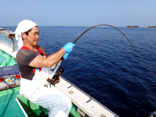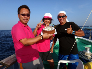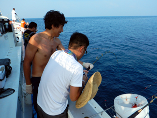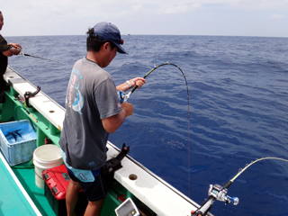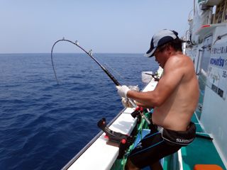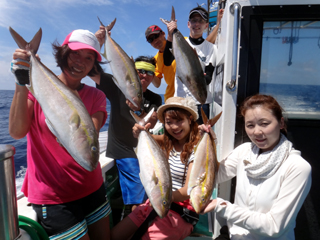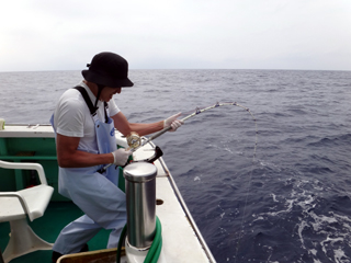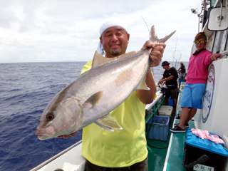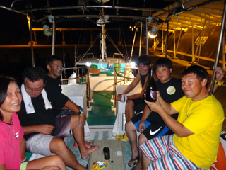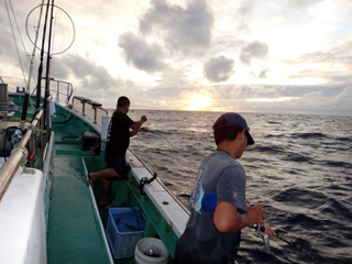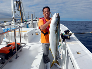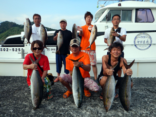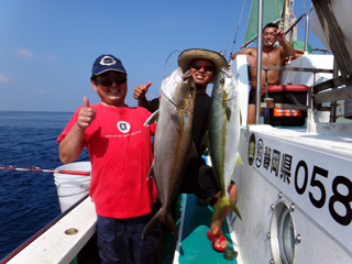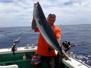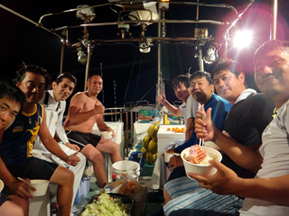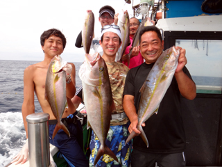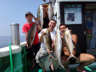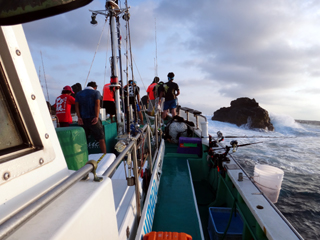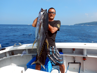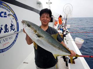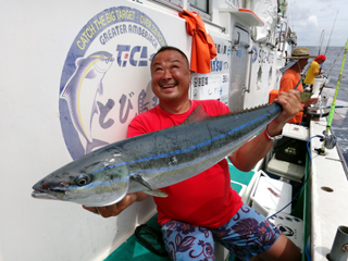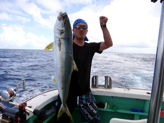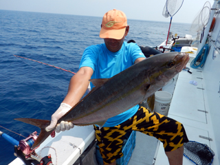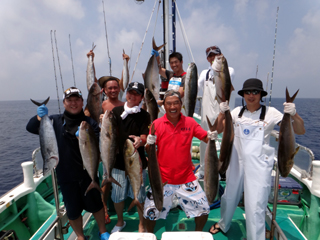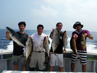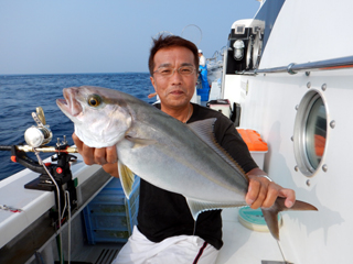 8/01~8/02 大人の遠足part④ 銭洲27.8℃薄濁り-藺灘波30.1℃澄み-銭洲27.4℃澄み カンパチ2.0-11.0kg21本、ヒラマサ6.9-8.1kg2本、ツムブリ6kg 海神への挨拶から始まりました、大人の遠足part④ 良き仲間との想いでに、海で楽しんでいただきました。 夜は、星空を眺めながらの船上BBQで海を満喫しました。 かなりの大物もヒットしましたが、ラインブレイクしてしまいました。 大物GETは簡単ではありませんね。次回チャレンジです!お疲れ様でした。