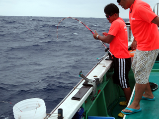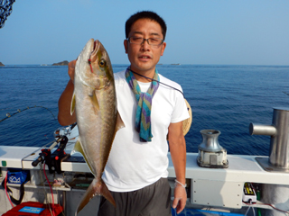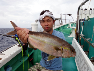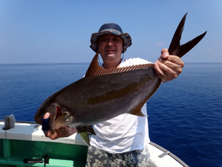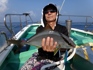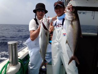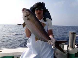 8/08~8/09 大人の遠足part⑤ 銭洲29.1℃澄み-藺灘波29.5℃澄み-台風14号接近の為帰港 モロコ16.25kg、カンパチ2.6kg、シマアジ2.9kg、ウメイロ多数でした。 台風14号の接近により、強風予報が出ていたため早上がりしました。 御乗船された皆さん、不完全燃焼ですが次回のチャンスを待ちましょう。 お疲れ様でした!