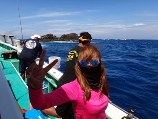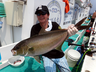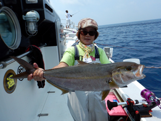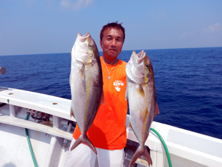 8/13 銭洲 28.3℃ 薄濁り カンパチ1.4kg、メイチダイ1.4kg、ウメイロ多数